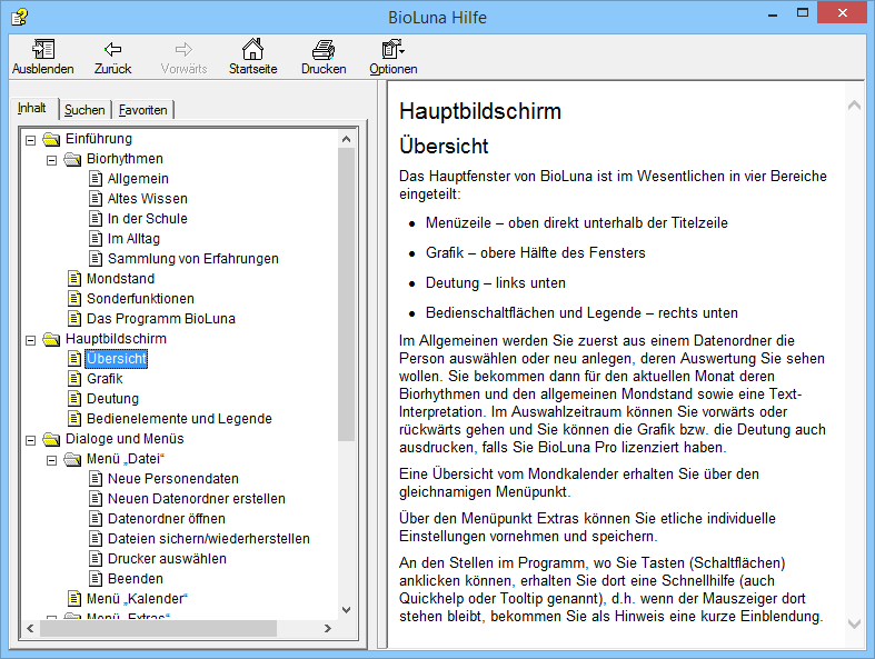 Diese Seite zeigt die auf der Seite "BioLuna-Funktionen" minimierten